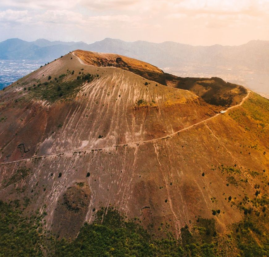 Admire o Monte Somma (1133 m) e o Vesúvio (1281 m), separados pelo Vale do Gigante. O Monte Vesúvio é majestoso e deslumbrante.
